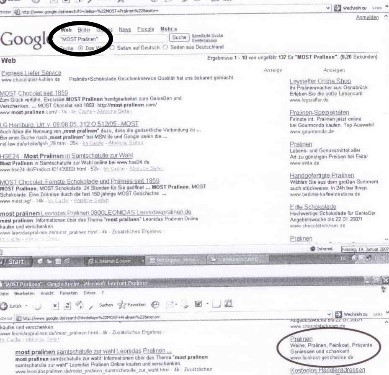 Unter den von google ergänzten Suchbegriffen befand sich allerdings auch die deutsche für Confiserie- und Schokoladenprodukte registrierte Wort-/Bildmarke MOST. Das erfuhr der Geschenkehändler nicht.